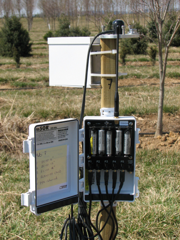 We have set up a four EM50R dataloggers (Decagon Devices) with five EC-5 soil moisture sensors each and one additional datalogger with light, temperature, rain, and humidity sensors to monitor environmental conditions.