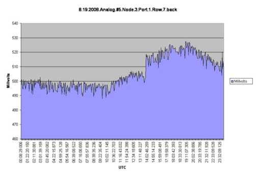This information (at right) indicates to us that plants may be exhibiting mild water stress early in the morning, and that irrigations should probably start earlier (around 7am) during hot dry weather.